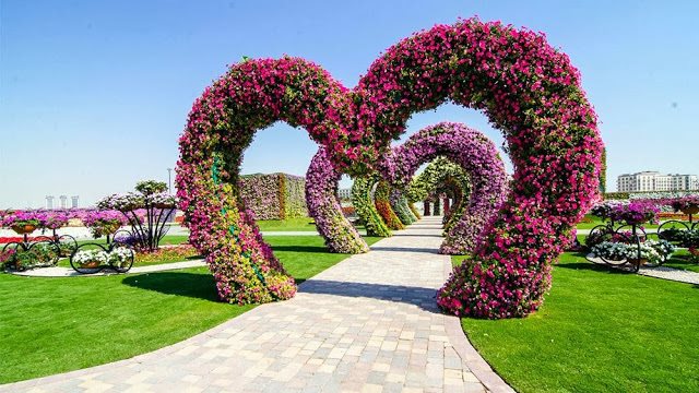 Ο λόγος για τον κήπο των Θαυμάτων στο Ντουμπάι που φιλοξενεί συνθέσεις λουλουδιών σε σχήματα καρδιάς, αστεριών και άλλα φανταστικά σχέδια. Στον κήπο υπάρχει επίσης μια λίμνη και ολόκληροι τοίχοι ντυμένοι με λουλούδια.