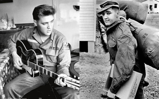 Ο «βασιλιάς» κατατάχθηκε στον αμερικανικό στρατό τον Μάρτιο του 1958, δύο χρόνια δηλαδή αφότου τα κομμάτια του «Hound Dog» και «Heartbreak Hotel» βγήκαν στο ραδιόφωνο μετατρέποντας το άγνωστο αγόρι από το Μισισίπι στον απόλυτο ηγεμόνα του ροκ εν ρολ! «Ο στρατός μπορεί να κάνει ό,τι θέλει με μένα, εκατομμύρια άλλοι έχουν καταταχθεί και δεν θέλω διαφορετική μεταχείριση από τους άλλους», δήλωσε ο Έλβις. Και ο στρατός, εισακούοντας τις παρεκκλίσεις του, τον ξαπέστειλε στη Γερμανία, όπου σε μια ευτυχή τροπή της μοίρας ο «βασιλιάς» γνώρισε τη μέλλουσα γυναίκα του, Πρισίλα Πρίσλεϊ!
