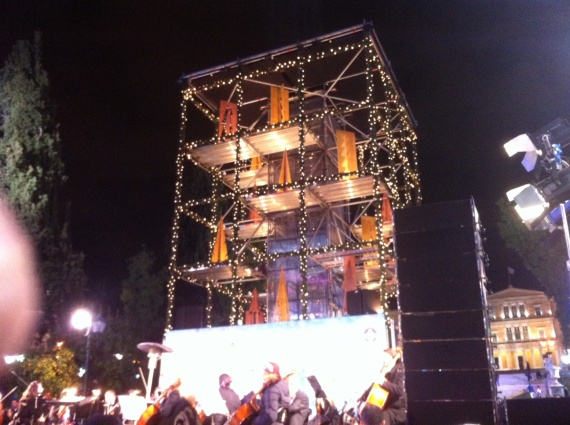 2012 μια αλλόκοτη κατασκευή αντί για δέντρο: Πολλοί Αθηναίοι διασχίζοντας την πλατεία Συντάγματος πίστευαν πως κάποιες εργασίες γίνονται και γι αυτό είχε στηθεί μια αλλόκοτη, στολισμένη σκαλωσιά. Κι όμως επρόκειτο για το «δέντρο» της χρονιάς που κέρδισε μόνο αρνητικά σχόλια – τα εξουδετέρωσε το παρακείμενο παγοδρόμιο που έγινε σημείο αναφοράς. Λίγα μέτρα παρακάτω στην Ομόνοια, μια κακής αισθητικής φάτνη καλυμένη με πλαστικό προκάλεσε μια αίσθηση μιζέριας και όχι γιορτής.
